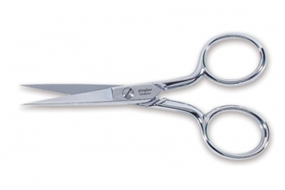 Versatile for all sewing and needle arts. Strong frame for cutting one layer of fabric or lightweight yarn. Sharp points reach and cut multiple threads. Includes leather sheath for storage. Double-plated chrome over nickel.